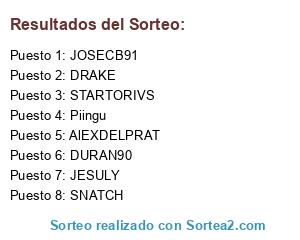 Lista de participantes: STARTORIVS, JOSECB91, JESULY, DURAN90, AlEXDELPRAT, SNATCH, DRAKE, Piingu.