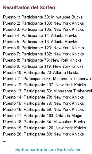 - Puesto 1: Participante 39: Milwaukee Bucks
