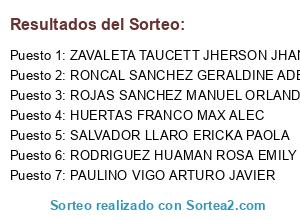 Lista de participantes: HUERTAS FRANCO MAX ALEC, PAULINO VIGO ARTURO JAVIER, RODRIGUEZ HUAMAN ROSA EMILY, ROJAS SANCHEZ MANUEL ORLANDO, RONCAL SANCHEZ GERALDINE ADELA, SALVADOR LLARO ERICKA PAOLA, ZAVALETA TAUCETT JHERSON JHANPOUL.