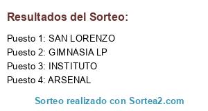 Lista de participantes: GIMNASIA LP, SAN LORENZO, INSTITUTO, ARSENAL.