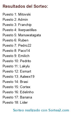 Lista de participantes: Admin, Brasi, Esmart, Ruben, Cortex, Aaleex19, Pedro22, Banana, Pedrito, Paco14, Lider, Emilich, Lakylu, Manuwatagata, Ikerpastillas, Edelinho, Mitovski, Franchip.