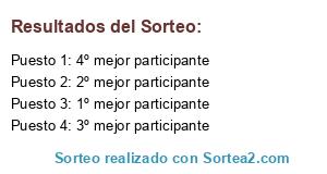 Lista de participantes: 1º mejor participante, 2º mejor participante, 3º mejor participante, 4º mejor participante.
