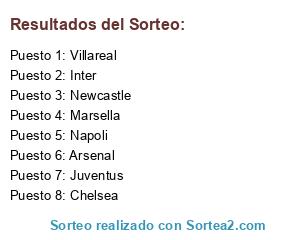 Lista de participantes: Inter, Arsenal, Newcastle, Chelsea, Villareal, Juventus, Marsella, Napoli.