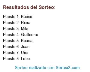 Resultados del sorteo: