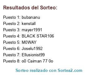Lista de participantes: Ellusionist99, mayer1991, kenstall, o0 Caiman 77 0o, Joselu1992, bubananu, M0WAY, BLACK STAR106.