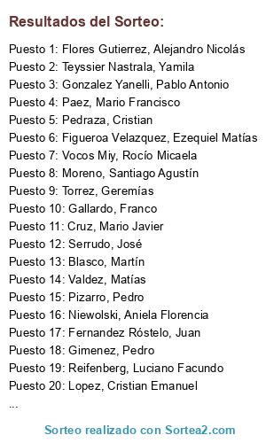Resultados del sorteo: