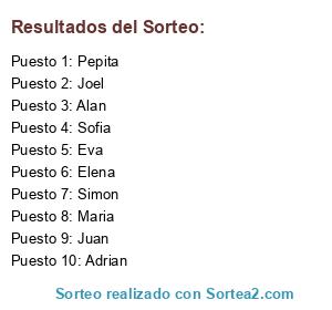 Lista de participantes: Juan, Elena, Maria, Pepita, Sofia, Eva, Adrian, Simon, Joel, Alan.