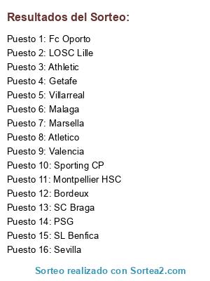 Lista de participantes: Fc Oporto, SC Braga, SL Benfica, Sporting CP, Athletic, Atletico, Getafe, Malaga, Sevilla, Valencia, Villarreal, LOSC Lille, Marsella, PSG, Bordeux, Montpellier HSC.