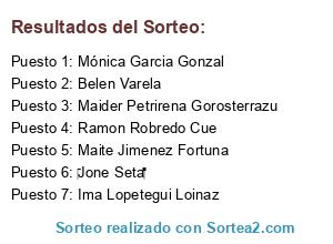 Lista de participantes: Ainhize Aguileta, Maider Petrirena Gorosterrazu , Nerea Petrirena Gorosterrazu, kikokarra, IzuNati, Mónica Garcia Gonzal, harkaitz plazaola, martin leal monroy, Iker Athletizale, Belen Varela , Carmen Davila Garcia, Agustina Rosas Baruch, Maite Jimenez Fortuna, Ima Lopetegui Loinaz, Edurne Martinez Clemente , Raquel Europe, Lorea Villanueva Alberdi, Eriz Martinez Diaz, Luis Abanda Cruz, Ramon Robredo Cue, Juan Ruiz Garcia, Indar Aldabe, F Javier Rodriguez Uribarri, Ana Aizcorbe Monreal, Andrés Rodriguez, tziar Arrausi, Jone Seta.