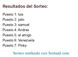Lista de participantes: Venezuela, Pinky, el amigo, Andres, luis, samuel, julio.