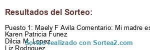 - Ganador: Maely F Avila Comentario: Mi madre es la mejor por que es humilde llena de amor temerosa de Dios, es una súper mamá Karen Patricia Funez Dilcia M. Lopez Liz Rodriguez Glenda Ayala