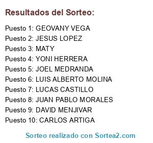 Lista de participantes: LUIS ALBERTO MOLINA, JUAN PABLO MORALES, YONI HERRERA, MATY, DAVID MENJIVAR, LUCAS CASTILLO, JESUS LOPEZ, JOEL MEDRANDA, CARLOS ARTIGA, GEOVANY VEGA.