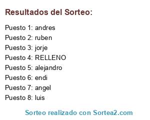 Lista de participantes: ruben, angel, andres, luis, alejandro, jorje, endi, RELLENO.