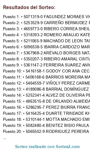 Resultados del sorteo: