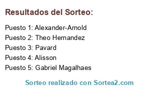 Lista de participantes: Alisson, Theo Hernandez, Alexander-Arnold, Gabriel Magalhaes, Pavard.