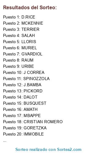 Lista de participantes: LLORIS, PICKORD, SPINOZZOLA, DALOT, CRISTIAN ROMERO, LISANDRO MARTÍNEZ, GVARDIOL, RAUM, GORETZKA, MCKENNIE, D.RICE, J.BAMBA, AMATH, URIBE, BUSQUEST, IMMOBILE, MURIEL, SALAH, MBAPPE, J CORREA, TERRIER.