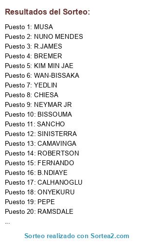 Lista de participantes: KEYLOR NAVAS, RAMSDALE, KIM MIN JAE, PEPE, BREMER, ROBERTSON, WAN-BISSAKA, YEDLIN, NUNO MENDES, R.JAMES, FERNANDO, CALHANOGLU, CAMAVINGA, BISSOUMA, B.NDIAYE, ONYEKURU, MUSA, SANCHO, SINISTERRA, CHIESA, NEYMAR JR.