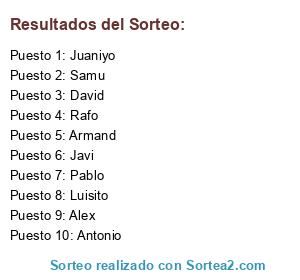 Lista de participantes: Javi, Juaniyo, Samu, Pablo, Alex, Rafo, David, Antonio, Armand, Luisito.