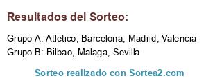 Lista de participantes: Barcelona, Malaga, Madrid, Atletico, Bilbao, Sevilla, Valencia.