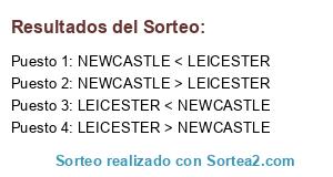 Lista de participantes: LEICESTER > NEWCASTLE, NEWCASTLE > LEICESTER, LEICESTER < NEWCASTLE, NEWCASTLE < LEICESTER.