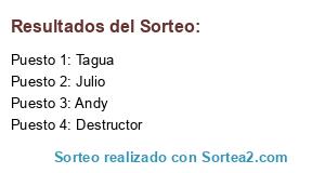 Lista de participantes: Andy (12 participaciones), Destructor (5 participaciones), Tagua (13 participaciones), Julio (14 participaciones), Julio.