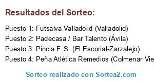 Lista de participantes: Pincia F. S. (El Escorial-Zarzalejo), Peña Atlética Remedios (Colmenar Viejo), Padecasa / Bar Talento (Ávila), Futsalva Valladolid (Valladolid).