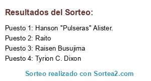 Lista de participantes: Raisen Busujima, Hanson ''Pulseras'' Alister., Raito, Tyrion C. Dixon.