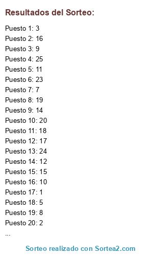 Resultados del sorteo: