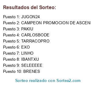 Lista de participantes: JUGON24 , IBANTXU , CARLOSBODE , PAKIU , SELEEEEE , BRENES, EXO , TARRACOPRO , LINHO , CAMPEON PROMOCION DE ASCENSO.