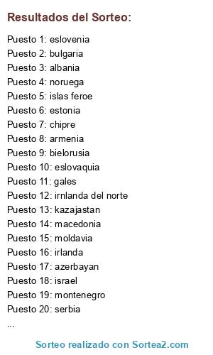 Lista de participantes: islas feroe, luxemburgo, kosovo, irnlanda del norte, gales, austria, rumania, dinamarka, bielorusia, suecia, polonia, escocia, israel, noruega, azerbayan, chipre, bulgaria, kazajastan, serbia, eslovenia, eslovaquia, hungria, moldavia, islandia, finlandia, albania, irlanda, bosnia h, georgia, letonia, macedonia, montenegro, estonia, armenia.