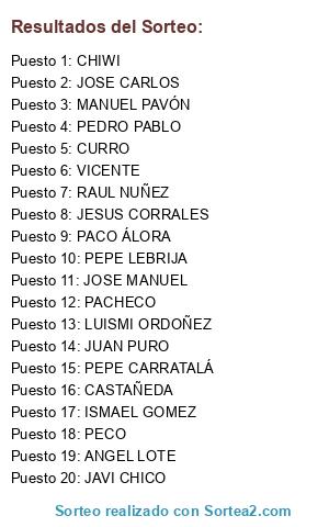 Lista de participantes: MANUEL PAVÓN, JUAN PURO, ANGEL LOTE, CHIWI, ISMAEL GOMEZ, JAVI CHICO, JESUS CORRALES, JOSE CARLOS, PACHECO, LUISMI ORDOÑEZ, CASTAÑEDA, PECO, PEDRO PABLO, PEPE CARRATALÁ, PEPE LEBRIJA, RAUL NUÑEZ, JOSE MANUEL, CURRO, VICENTE, PACO ÁLORA.