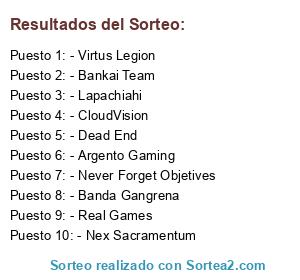 Lista de participantes: - Dead End, - Banda Gangrena, - Bankai Team, - CloudVision, - Never Forget Objetives, - Argento Gaming, - Virtus Legion, - Nex Sacramentum, - Lapachiahi, - Real Games.