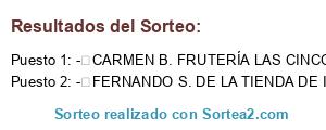 Este sorteo ha sido certificado por Sortea2. Sortea2 garantiza que: