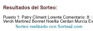 - Ganador: Patry Climent Lorente Comentario: 💖💖💖 Ojala me toque Veroh Martinez Bonnet Noellia Cerdan Murcia Eva Maria Vittori Freire