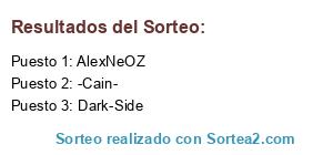 Lista de participantes: Dark-Side (4), vioetaguay133 (1), DB_Cooper (1), -Cain- (4), miguel-mejor. (1), AlexNeOZ (4), missgiss98 (1), djanico (1).