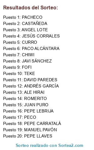 Lista de participantes: FOFI, DAVID PAREDES, PEPE LLAVES, PACHECO, CURRO, PEPE LEBRIJA, PECO, ROMERITO, CHIWI, CASTAÑEDA, PEPE CARRATALÁ, ALE HIRAI, MANUEL PAVÓN, ANDRÉS GARCÍA, PACO ALCÁNTARA, JESÚS CORRALES, TEKE, JAVI SÁNCHEZ, JUAN PURO, ANGEL LOTE.