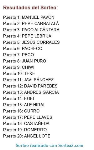 Lista de participantes: CASTAÑEDA, ANGEL LOTE, PACO ALCÁNTARA, PACHECO, JESÚS CORRALES, CHIWI, CURRO, ROMERITO, JUAN PURO, FOFI, JAVI SÁNCHEZ, ANDRÉS GARCÍA, ALE HIRAI, TEKE, DAVID PAREDES, PEPE LEBRIJA, PECO, MANUEL PAVÓN, PEPE CARRATALÁ, PEPE LLAVES.