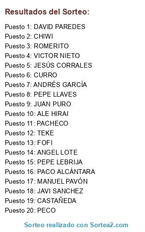 Lista de participantes: JESÚS CORRALES, PACO ALCÁNTARA, ANDRÉS GARCÍA, JUAN PURO, VICTOR NIETO, CASTAÑEDA, CURRO, PACHECO, DAVID PAREDES, FOFI, ANGEL LOTE, JAVI SANCHEZ, PECO, ROMERITO, PEPE LLAVES, PEPE LEBRIJA, TEKE, CHIWI, ALE HIRAI, MANUEL PAVÓN.