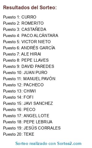 Lista de participantes: JESÚS CORRALES, PACO ALCÁNTARA, CASTAÑEDA, PEPE LLAVES, ROMERITO, CURRO, JAVI SANCHEZ, ANGEL LOTE, PECO, DAVID PAREDES, MANUEL PAVÓN, TEKE, ALE HIRAI, JUAN PURO, VICTOR NIETO, CHIWI, ANDRÉS GARCÍA, FOFI, PEPE LEBRIJA, PACHECO.