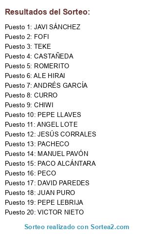 Lista de participantes: JUAN PURO, PEPE LLAVES, PACO ALCÁNTARA, CASTAÑEDA, PEPE LEBRIJA, DAVID PAREDES, JAVI SÁNCHEZ, ALE HIRAI, TEKE, MANUEL PAVÓN, ANDRÉS GARCÍA, ROMERITO, ANGEL LOTE, FOFI, CURRO, JESÚS CORRALES, VICTOR NIETO, PECO, PACHECO, CHIWI.