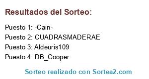 Lista de participantes: -Cain-(14), maxirodrig(1), ser-9w2-7(2), SAMMAS22(2), JuiceN(3), CUADRASMADERAE(1), zeuzJuanJD(3), patitojuan0203(1), DB_Cooper(1), johan6567(1), Aldeuris109(1), princesa.chicle(1), Asantecemo (1).