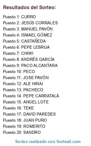 Lista de participantes: PEPE LEBRIJA, JUAN PURO, PECO, ALE HIRAI, DAVID PAREDES, MANUEL PAVÓN, JESÚS CORRALES, SANDRO, ANGEL LOTE, ROMERITO, CURRO, CHIWI, CASTAÑEDA, ISMAEL GÓMEZ, JOSE PAVÓN, TEKE, PEPE CARRATALÁ, PACO ALCANTARA, ANDRÉS GARCÍA, PACHECO.