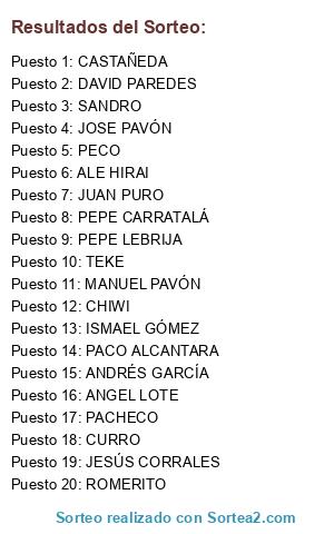 Lista de participantes: JESÚS CORRALES, CURRO, MANUEL PAVÓN, CASTAÑEDA, PEPE LEBRIJA, PECO, ISMAEL GÓMEZ, CHIWI, PACO ALCANTARA, JOSE PAVÓN, PACHECO, ANDRÉS GARCÍA, ALE HIRAI, ANGEL LOTE, DAVID PAREDES, JUAN PURO, PEPE CARRATALÁ, TEKE, ROMERITO, SANDRO.