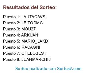 Lista de participantes: RIALICE, ARKUAN, MANJATO, JEREGROW, ANALYZE, MOU27, CHELOBEST, ALE73, LEITODMC, VAZQUEZMAXI, TREZEGUET31, ALAN_MASTER, NHOLLMAN, MARTINCHO, RODRICAPOLANGA, FEDECARP209, JAVIBARQUI, JUANSOLAR, JORGE_MELER, RACAGNI, LAUTACAVS, CANNONIERE, SERGIOCABJ, CARP, EMI_BOCA, PCFULLMF, CANAYA4A0, MARIO_LAKD, RELOCOARG, JUANMARCHI8, ANDRESMORON, MAXITOREX1.