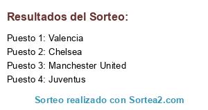 Lista de participantes: Juventus, Chelsea, Valencia, Manchester United.