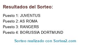 Lista de participantes: JUVENTUS, BORUSSIA DORTMUND, RANGERS, AS ROMA.