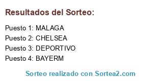Lista de participantes: MALAGA, CHELSEA, BAYERM, DEPORTIVO.