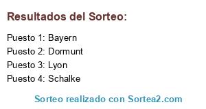 Lista de participantes: Schalke, Bayern, Dormunt, Lyon.