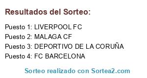 Lista de participantes: LIVERPOOL FC, FC BARCELONA, DEPORTIVO DE LA CORUÑA, MALAGA CF.