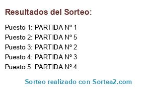 Lista de participantes: PARTIDA Nº 1, PARTIDA Nº 2, PARTIDA Nº 3, PARTIDA Nº 4, PARTIDA Nº 5.